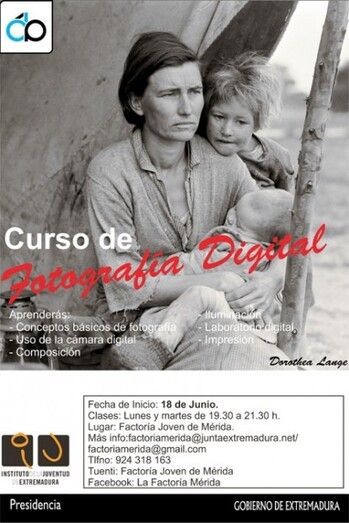 Dos interesantes actividades se celebrarán en junio y julio en la Factoría Joven de Mérida, dependiente del Instituto de la Juventud de Extremadura, con el objetivo de formar a los jóvenes interesados en dedicar su futuro laboral al mundo audiovisual e informar de las posibilidades y recursos que las diferentes modalidades de este mundo les pueden proporcionar. Así los jóvenes de Mérida podrán acceder a un Curso de Fotografía Digital y a un Taller de Realización de Cortometrajes en las instalaciones de la Factoría Joven.