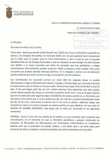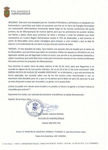 El día 31 de junio, el alcalde de Alburquerque, Ángel Vadillo Espino, hacía un paréntesis en su reivindicación en el Ministerio de Industria de Madrid para asistir a un pleno en su pueblo.