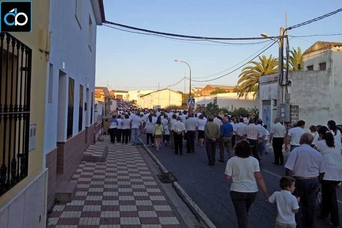 Los vecinos de Zahínos, vestidos con camisetas blancas y portando una vela roja, se han manifestado hoy en el consultorio médico.