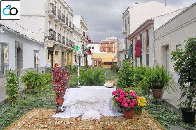 El ayuntamiento y agrupaciones religiosas de Puebla de la Calzada, junto con los vecinos de las calles por donde pasaba el recorrido, se volcaron en colocar a lo largo de la trayectoria prevista para la procesión, hermosos altares, filas interminables de macetas y motivos relacionados con el Corpus Christi como espigas, racimos de uvas, mantones, banderas...