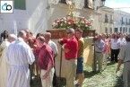 Durante el recorriendo, repleto de juncias y pétalos de flores, la custodia se fue parando en todos los altares que se habían instalado con este motivo, siempre acompañada por la banda de música, niños de Primera Comunión y fieles que la siguieron con el máximo respeto.