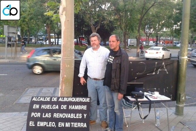 El alcalde de Alburquerque, Ángel Vadillo, ya lleva tres días sin probar alimento alguno y dispuesto a llegar “hasta el final” para que su pueblo “no muera”. Se encuentra sentado en la acera de la puerta del Ministerio de Industria de Madrid, ya que ni siquiera lo dejan pasar, desde el inicio de esta tercera acción, a la zona ajardinada de la puerta del Ministerio, ni al interior del mismo como ha estado haciendo estos dos meses. Aunque ya comienza a estar un poco más débil físicamente, él mantiene esta valiente acción por el futuro de su tierra. Lo hace con toda la fuerza que le da la gente de su pueblo. Pasa las horas leyendo la obra del Premio Nobel de Economía, Paul Krugman “Acabad ya con esta crisis” y buscando la forma de que el Gobierno reaccione ante un decreto que priva de su futuro a españoles, extremeños y alburquerqueños. Al comienzo de la huelga de hambre el SAMUR desplazó una unidad móvil para realizarle al primer edil toda clase de pruebas, que verificaron que se encontraba en buen estado de salud ante de comenzar con esta tercera y definitiva acción. El 112 le realiza controles y analíticas para controlar lo que va perdiendo cada día sin comer y poder verificar su estado de salud.