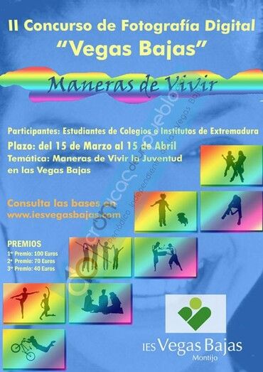 Con el objetivo de incentivar la creatividad del alumnado extremeño, el I.E.S. Vegas Bajas de Montijo ha convocado el II Concurso de Fotografía Digital, en el que podrán participar los estudiantes de cualquier Centro Educativo de Extremadura de los niveles previos a la Universidad (Primaria, Secundaria, Bachillerato, Enseñanza de Adultos, Ciclos Formativos...)