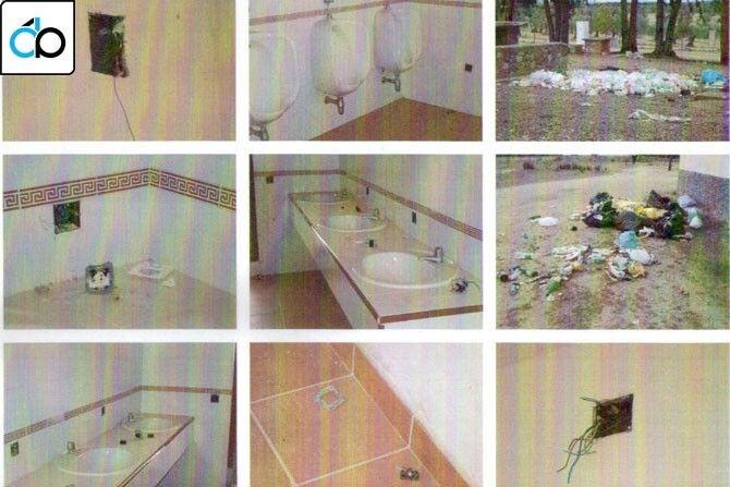 Cabezas” donde en los aseos falta todo el cableado, con daños en apagadores y