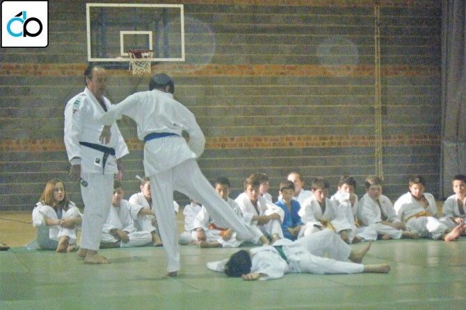 Les acompañaron otros dúos, bien clasificados en el ranking nacional, como el mixto (infantil) formado por Fernando Gordillo y Marta García., o el que forman los cadetes P. José Gordillo y Álvaro Cuéllar. Éstos realizaron una espectacular exhibición de Kumite, o lucha japonesa de origen samurai, como cuenta P. José Gordillo: “Es la lucha que practicaban los antiguos samurais, y se compone de puños, patadas, proyecciones y luxaciones para inmovilizar al rival. Hay que tener buena preparación física, velocidad, flexibilidad y fuerza, todo es necesario. Y asumir ciertos riegos, yo por ejemplo, en el campeonato nacional me quedé 5 segundos sin respiración al caer de espaldas con fuerza, esto es algo que puede pasar, aunque tengo claro que me gustaría llegar a lo más alto”.
