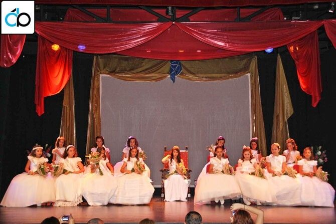 Las 14 niñas que formaban la corte de honor de la reina: Leonor Aguilera Mendoza, María José Antúnez Gordillo, Iratxe Aunión Cayetano, Aida Becerra Mansilla, Belén Gragera Pache, María Marchena Parejo, Gisela Marín Casado, Aroa Medina Fernández, Naiara Mendoza Casado, Fátima Recio Pérez. Gloria Rodao Carreira, Silvia Rodríguez García y Natalia Tejea Alberto, todas ellas, vestidas de blanco, llenaba de elegancia y simpatía el escenario.