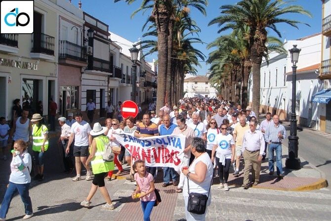 Una vez en Oliva de la Frontera,  la cantidad de manifestantes se vio incrementada por un buen número de oliveros y por los numerosísimos zahineros que no se vieron con fuerzas para hacer el camino y optaron por ir en coche y hacer sólo la manifestación, propiamente dicha, por el casco urbano de nuestro pueblo vecino.