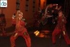 Teatrapo sacó a las calles a cuatro dragones, tres de ellos con efectos pirotécnicos y uno con música electrónica, para realizar un espectáculo visual con fuego real controlado e inofensivo para el público.