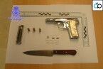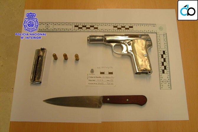 Rápidamente varios agentes realizaron una coordinada búsqueda, dando como resultado la plena identificación y detención, en Villanueva de la Serena, del supuesto autor de los hechos, al que se le interceptó conduciendo un vehículo careciendo del preceptivo permiso, y en el interior del mismo portaba una pistola de 9 mm. y un cuchillo de 15 cm. de hoja.