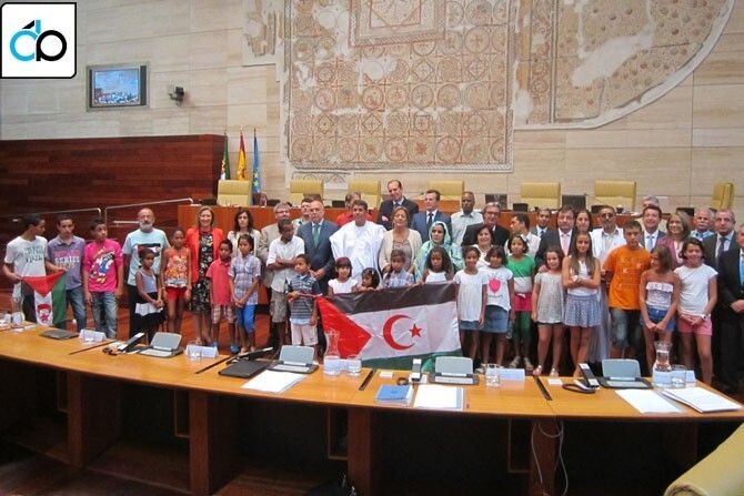 “Aunque se ha rebajado el carácter institucional de este acto por presiones de Marruecos y el partido socialista quiso sacarlo del Hemiciclo”, los diputados de IUV-SIEX han celebrado en el Hemiciclo  con la delegación del parlamento saharaui, voluntarios, defensores de la causa del Sáhara Occidental y niños saharauis que pasan sus vacaciones escolares en Extremadura este gesto de solidaridad.