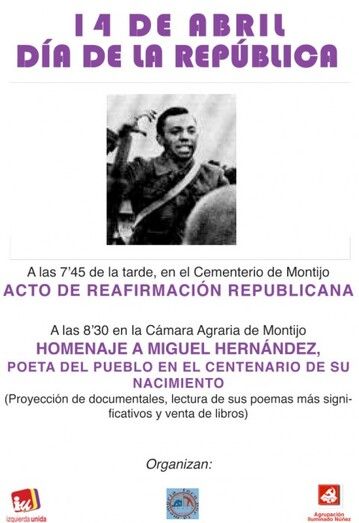 El próximo 14 de abril (Día de la República) a las 19:45 horas, en el Cementerio de Montijo, se celebrará un acto de reafirmación republicana.