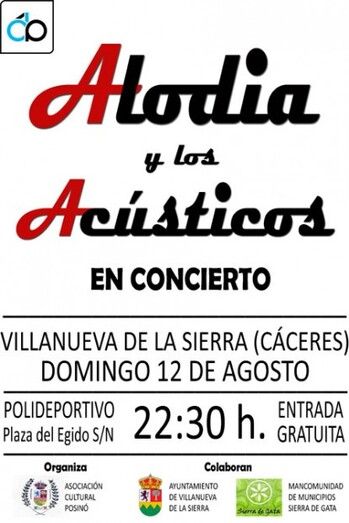 “Alodia y los Acústicos” asocia juventud y veteranía versionando temas de siempre con un peculiar toque acústico. Sus componentes son Alodia López: vocalista principal, Luis Núñez: guitarrista, Abel García: bajista, Alfonso Pérez: percusionista principal, Gloria Gragera: flautista, voces y percusión y Víctor Gragera: guitarrista. Sus próximas actuaciones serán en el Kiosko del Parque Municipal de Montijo el sábado  11 de agosto y en Villanueva de la Sierra (Cáceres) el domingo 12 de agosto.