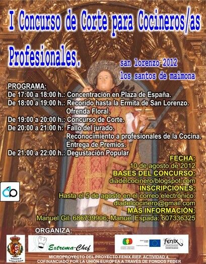 El Ayuntamiento de los Santos de Maimona y la Asociación Gastronómica Extrema-chef celebran el día del patrón de los Cocineros “San Lorenzo” el día 10 de Agosto con una jornada gastronómica enmarcada dentro de los microproyectos que el Consistorio desarrollará gracias al proyecto Fénix Riep.