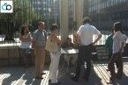 Las concentraciones en apoyo a la reivindicación de Vadillo se siguen sucediendo cada día en Madrid y en Alburquerque. Ayer los vecinos del barrio madrileño de Lavapiés dedicaron todo un día de las Fiestas de San Cayetano, San Lorenzo y la Virgen de la Paloma a las renovables. Por ello, pidieron a Ángel Vadillo que asistiera como invitado de excepción para hablar del tema. Allí lo esperaba la Asociación de Vecinos “La Corrala” (Latino, Rastro y Lavapiés) luciendo camisetas de apoyo a Vadillo y a su reivindicación (“Ángel Vadillo, Lavapiés está contigo, Si a las renovables en Alburquerque”). El primer edil participó también en la retransmisión en directo de las fiestas concediendo una entrevista a “ONDA LAVAPIÉS” desde la Plaza de Cascarro, donde los vecinos habían puesto carteles de apoyo a su reivindicación.