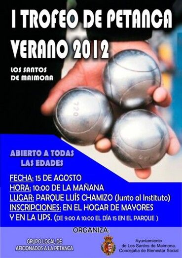 El Ayuntamiento de Los Santos de Maimona, a través del Área de Bienestar Social, ha organizado; junto a un grupo de aficionados; el I Trofeo de Verano de concurso de petanca.