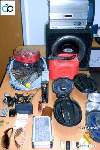 Robos perpetrados en la misma noche, tras fracturarles las ventanillas y apoderarse de aparatos de música, telefonía móvil, Pendrives USB, carteras con documentación, gafas de sol y dinero en metálico