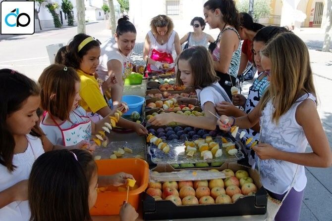 Este martes 14 de Agosto se ha realizado un taller de cocina saludable para niños en la plaza mayor de Guadiana del Caudillo donde se han elaborado brochetas de frutas.