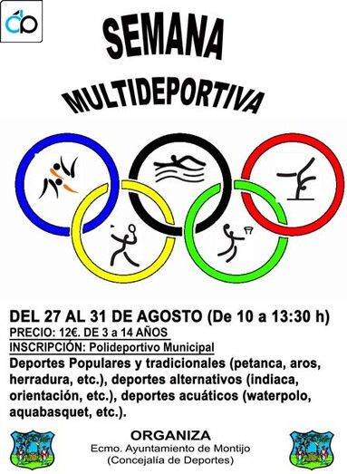 El Ayuntamiento de Montijo, a través de la Concejalía de Deportes, organiza una Semana Multideportiva del 27 a 31 de agosto en el Complejo Polideportivo Municipal.
