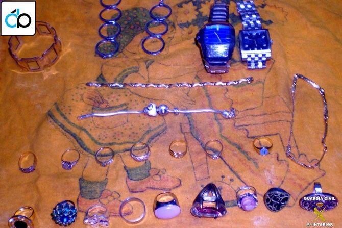 Los hechos ocurrieron en la madrugada del pasado domingo, cuando el propietario de una vivienda de la localidad de Aceuchal, denunció el robo de diversas joyas, pulseras, esclavas, cadenas colgantes y anillos de oro así como dos relojes, valorados en unos 2.500 euros.