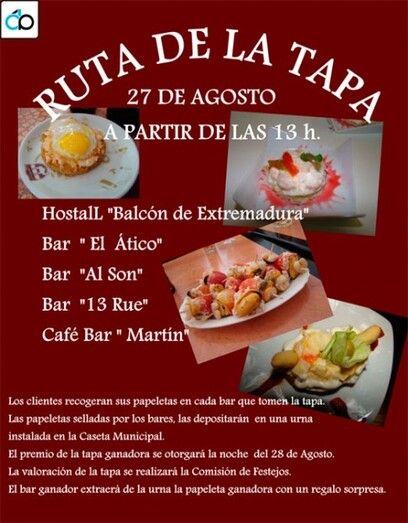 Colaboran los siguientes establecimientos: Hostal “Balcón de Extremadura”, Bar “El Ático”, Bar “Al Son”, Bar “13 Rue” y Café Bar “Martín.