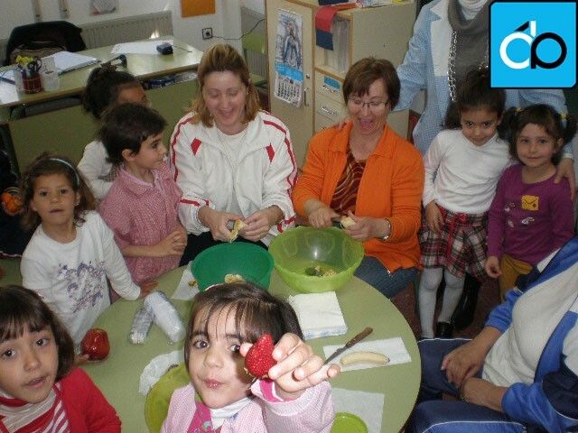 • Talleres de cocina saludable. Cada clase acompañado por sus maestros y padres elaboraron un plato sencillo y saludable que después disfrutamos juntos. Los platos elaborados fueron: Macedonia de frutas, gazpacho, brochetas de verduras, brochetas de fruta, zumo de naranja, sándwich vegetal, picadillo, etc. Esta actividad se celebró a partir de las 11,15 de la mañana y todos aprendimos y disfrutamos mucho.