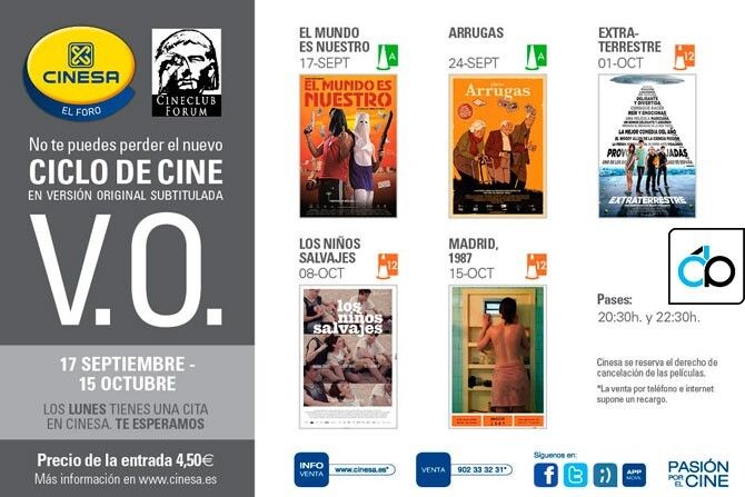 El ciclo lo componen las películas El mundo es nuestro, Arrugas, Extraterrestre, Los niños salvajes y Madrid 1987, que se proyectarán los lunes, a las 20.30 y 22.30 horas en El Foro, a un precio de 4.50 euros (4 euros si es por teléfono o internet).
