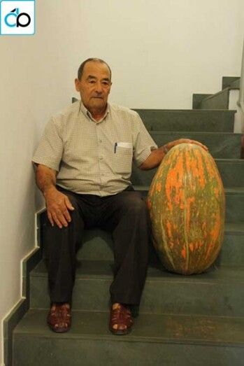 El poblanchino Toribio Aunión cultiva una calabaza de 32 kilos