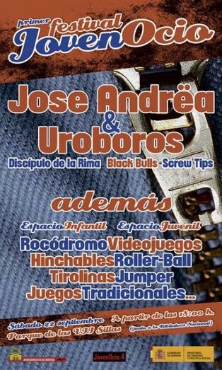 El próximo día 22 de septiembre a partir de las 18 horas tendrá lugar el primer Festival JovenOcio en Mérida. Será gratis, en el Parque de las VII Sillas (junto a la biblioteca nacional) y contará con la presencia del ex cantante de Mago de Oz, José Andrea y su banda Uroboros. También actuarán los emeritenses Discípulo de la Rima, Black Bulls y Screw Tips.