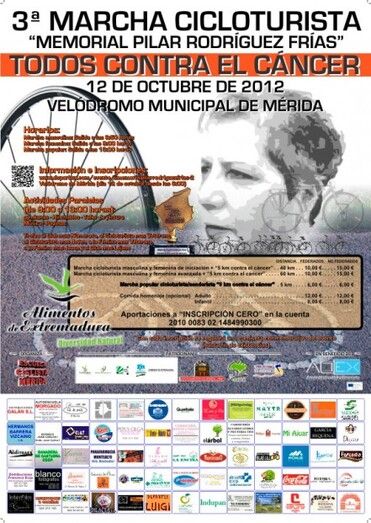 La Escuela de ciclismo de Mérida, la Federación Extremeña y el consistorio emeritense organizan un año más la tercera edición de la Marcha Cicloturista Memorial “Pilar Rodríguez Frías”, que será éste viernes 12 de octubre, día del Pilar.