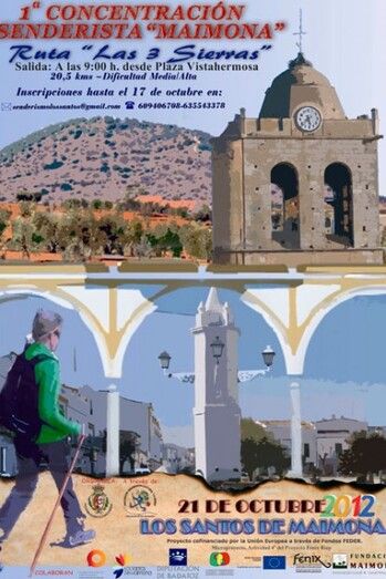 El Ayuntamiento de Los Santos de Maimona, a través de la Asociación Senderista-Cultural “La Verea” y encuadrada en los Microproyectos de la Actividad 4ª del PROYECTO FENIX-RIEP, Red de Innovación Económica Centrada en la Personas y cofinanciados por la Unión Europea a través de Fondos FEDER, organiza la I CONCENTRACIÓN SENDERISTA en nuestra localidad.