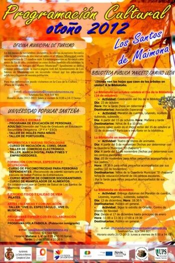 El Ayuntamiento de Los Santos de Maimona a través de la Universidad Popular Santeña ha iniciado su programación de otoño e invierno. Una programación amplia y variada destinada a mejorar las capacidades sociales, formativas y físicas de los santeños y santeñas.
