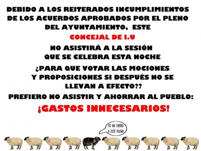 Acevedo propone que se realice un balance del resultado de los acuerdos a los que se ha llegado y cuales de ellos se han puesto en marcha y cuales no. Uno de los ejemplos es el estudio de las cuentas del Teatro Municipal, que se aprobó pero nunca se ha llevado a cabo. El concejal está dispuesto a dimitir si la situación continúa porque considera que los 90 euros que cobra por cada sesión plenaria no sirven para nada, si las cuestiones que se aprueban no siguen adelante.