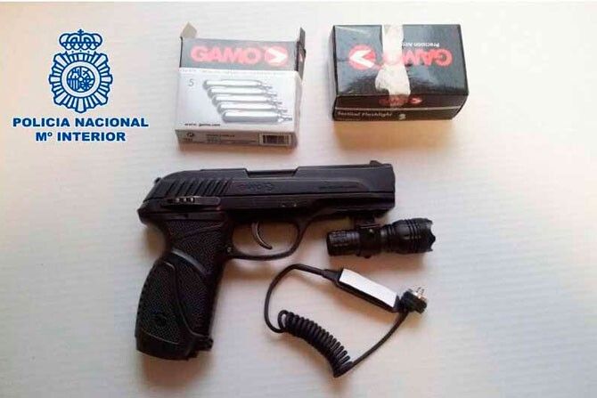 Puestos los hechos en conocimiento de agentes policiales, se realizaron las gestiones oportunas para el esclarecimiento de los mismos, dando como resultado la plena identificación, localización y detención de un varón de 24 años de edad, quien fué traslado a dependencias policiales. Tras la investigación se pudo comprobar que la víctima había sido pareja sentimental de la pareja actual del denunciado. En el mismo momento de la detención se le intervino el arma con la cual había amenazado de muerte a la víctima, verificando que dicha arma era una pistola de aire comprimido.