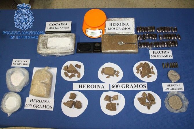 2.360 gramos de heroína, 450 gramos de hachís, útiles para su distribución, además