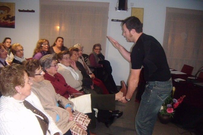 Acto seguido, a las 18´15 h, Domingo López Redondo, Licenciado en Ciencias del Deporte y técnico salud-deportivo del Programa “Extremadura en Forma” de la Junta de Extremadura expuso la terapia de la actividad física en enfermos de Alzheimer, el cual de una manera práctica se centró en el tipo y características de la actividad física, indicando lo adecuado para cada una de las fases de la enfermedad de Alzheimer, incidiendo mucho en la orientación, el ejercicio óculo-manual, el equilibrio y la flexibilidad entre otros.