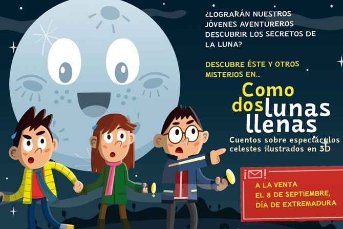 “Descubre las maravillas y los misterios de espectáculos celestes ilustrados en 3D”, con esta frase tan sugerente comienza la nueva publicación que el docente y divulgador científico Carlos Javier Rodríguez ha escrito con el profesor Fernando Catalán Segovia bajo el título “Como dos lunas llenas”. Esta colección de cuentos, con un planteamiento sin precedente en España, aproxima al público infantil de una forma didáctica, y con rigor científico, importantes fenómenos relacionados con la Astronomía.