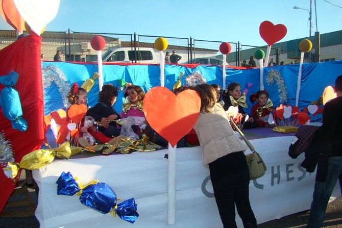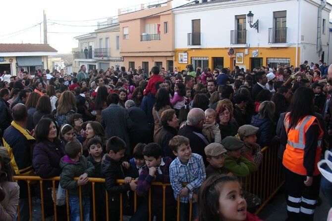 Los niños de Lobón, recogieron además de sus regalos, caramelos y globos que fueron lanzados por las calles durante el desfile.