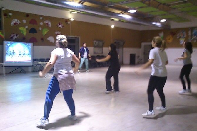 Zumba es un movimiento o disciplina fitness creado por el colombiano Alberto “Beto” Pérez en Cali (Colombia), durante los 90, y que se ha popularizado por todo el mundo. Se trata de una mezcla de “ejercicios aeróbicos con ritmos latinos, y hasta con Flamenco”, explica el monitor de estas clases, Anthony Guerrero. Sus clases se realizan por grupos, los Martes y Jueves, durante mañanas y tardes. “Ahora se ha creado otro turno los Viernes, a partir de as 8 y media de la tarde, para que puedan asistir aquellos que por su trabajo no pueden antes”.