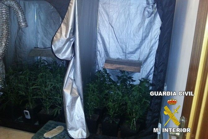 En la habitación de la vivienda, además de las plantas, se encontraron 135 gramos de marihuana  distribuida en bolsas de plástico, preparadas para su distribución, también hallaron una báscula de precisión y otras bolsas dosificadoras. Así mismo, se pudo comprobar su total acondicionamiento, ya que existía un extractor de olores e incluso medidores de temperatura, fertilizantes, reguladores de ph y otros productos de jardinería, que hacían que las plantas disfrutaran de lo necesario para su rápido crecimiento.