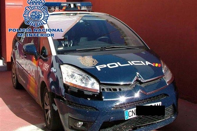 En esos momentos el vehículo, que ya era perseguido por varias dotaciones de Policía Nacional y Local, se dirigió hacia la carretera de Campo Maior, donde un radiopatrulla de la Policía Nacional, al intentar cortarle el paso, tuvo que hacer una maniobra brusca para no ser embestido, colisionando fuertemente con un árbol, quedando el vehículo inutilizado y los agentes heridos.
