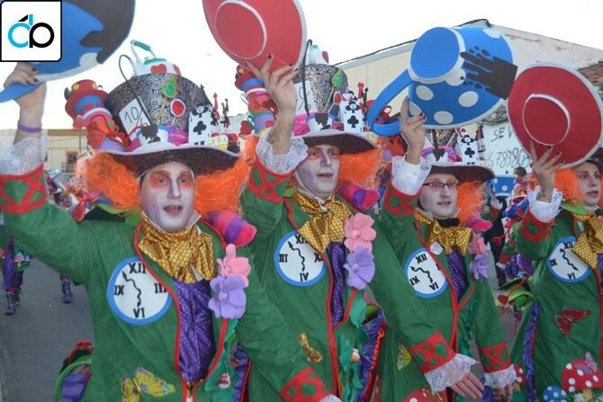 El cuarto puesto ha sido para la otra comparsa de la localidad, “Vas como quieras”, con un espectacular disfraz basado en el mundo de Alicia en el país de las Maravillas, y sobre todo en el personaje del sombrero loco. Un traje  muy bien coordinado con una cuidada coreografía y música.