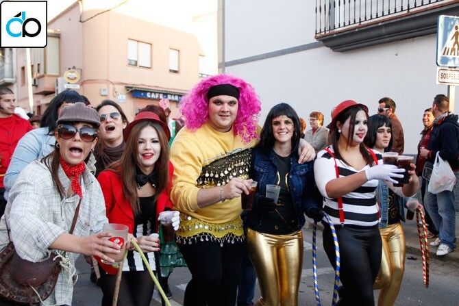 Los Cojones primeros en el desfile de comparsas de Montijo