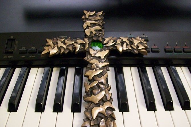 Dos regalos le hicimos en ese momento: por un lado una cruz especial que os adjunto, formado con palomas, y como no ser de otra manera, una canción, la Nana que el cantaba su madre, versión coro y orquesta (que tambien os adjunto).