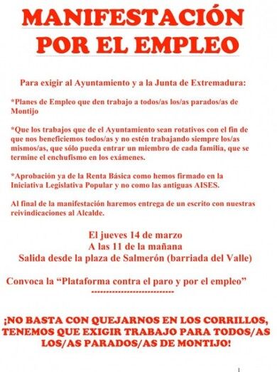 *Planes de Empleo que den trabajo a todos/as los/as parados/as de Montijo