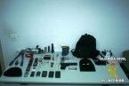 como pasamontañas, bufandas y guantes, así como herramientas usadas para la