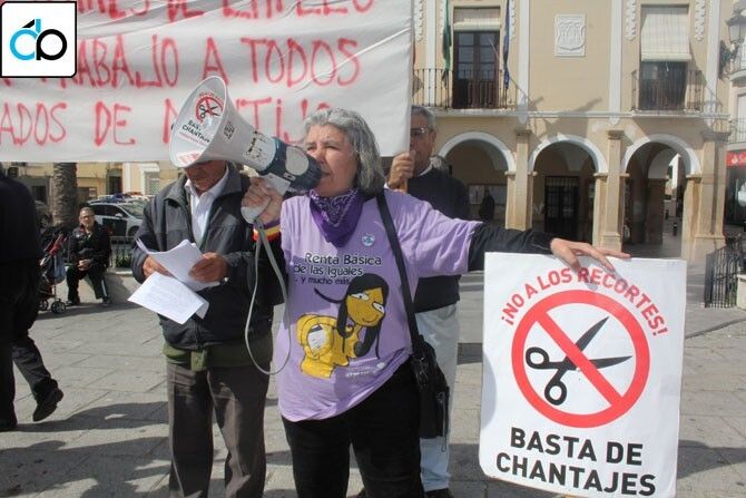 La “Plataforma contra el paro y por el empleo” de Montijo han realizado la quinta concentración de parados en la Plaza de España.