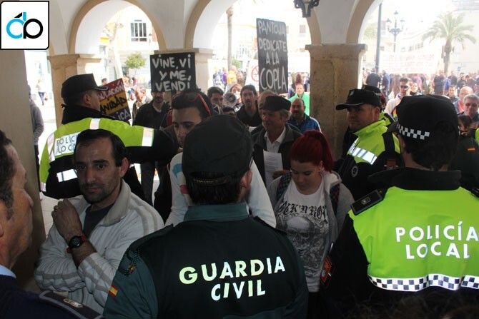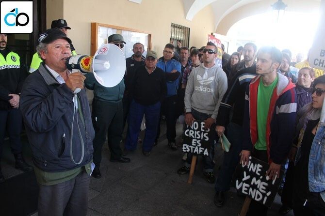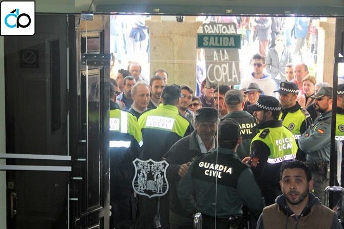 Alonso Gómez en representación de la Plataforma acompañado de varios de los manifestantes subieron a la Sala de Juntas para ser recibidos por el alcalde, Alfonso Pantoja, que pidió la salida de la prensa de la sala argumentando que la reunión era una mesa de trabajo. Los manifestantes afirmaron que si la prensa no podía estar presente ellos también se irían, abandonando la sala.
