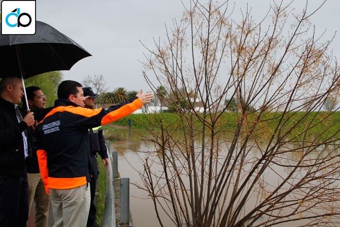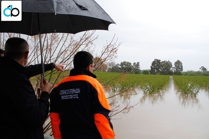 Durante la tarde, el delegado del Gobierno de Extremadura, Germán López ha visitado la margen izquierda del río Guadiana y Barbaño, donde ha atendido a los medios junto al presidente de Confederación Hidrográfica del Guadiana.