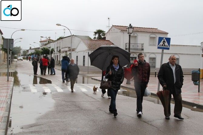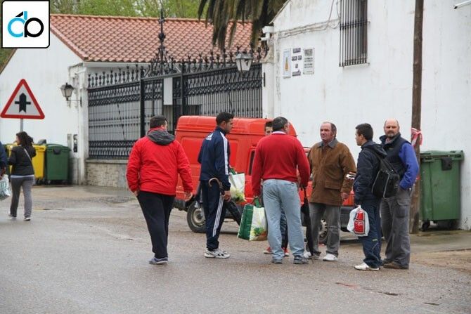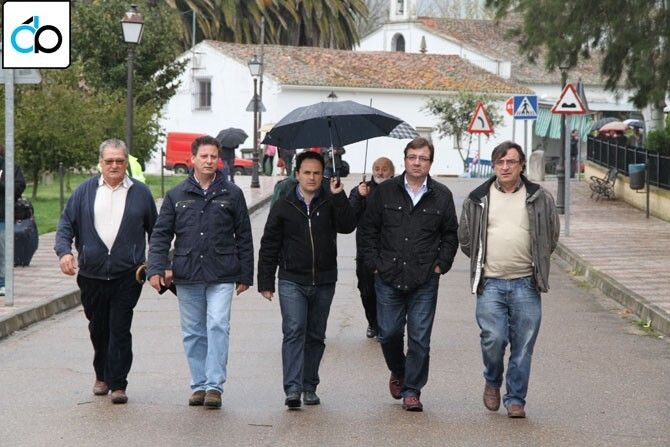 secretario general del Partido socialista, Guillermo Fernández Vara, que también han charlado con el alcalde de Barbaño, Juan Manuel Ambrona.