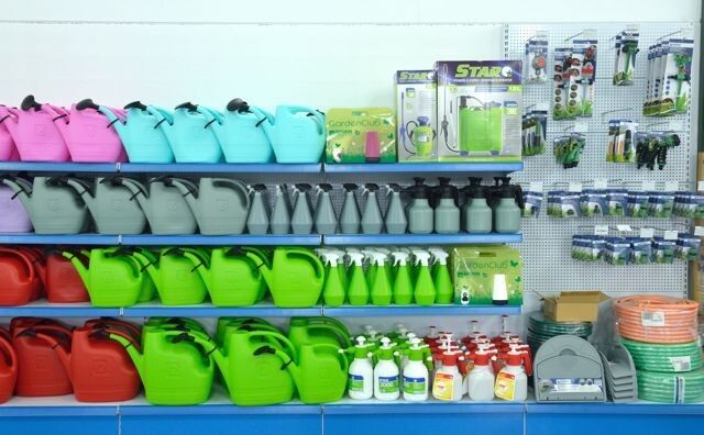 - todos los complementos necesarios para el cuidado de la terraza y el jardín: Tierras, piedras, abonos, productos fitosanitarios, semillas, césped, bulbos, macetas, cerramientos naturales, celosías, herramientas, riego, mangueras, madera tratada, maquinaria, barbacoas, fuentes, etc.